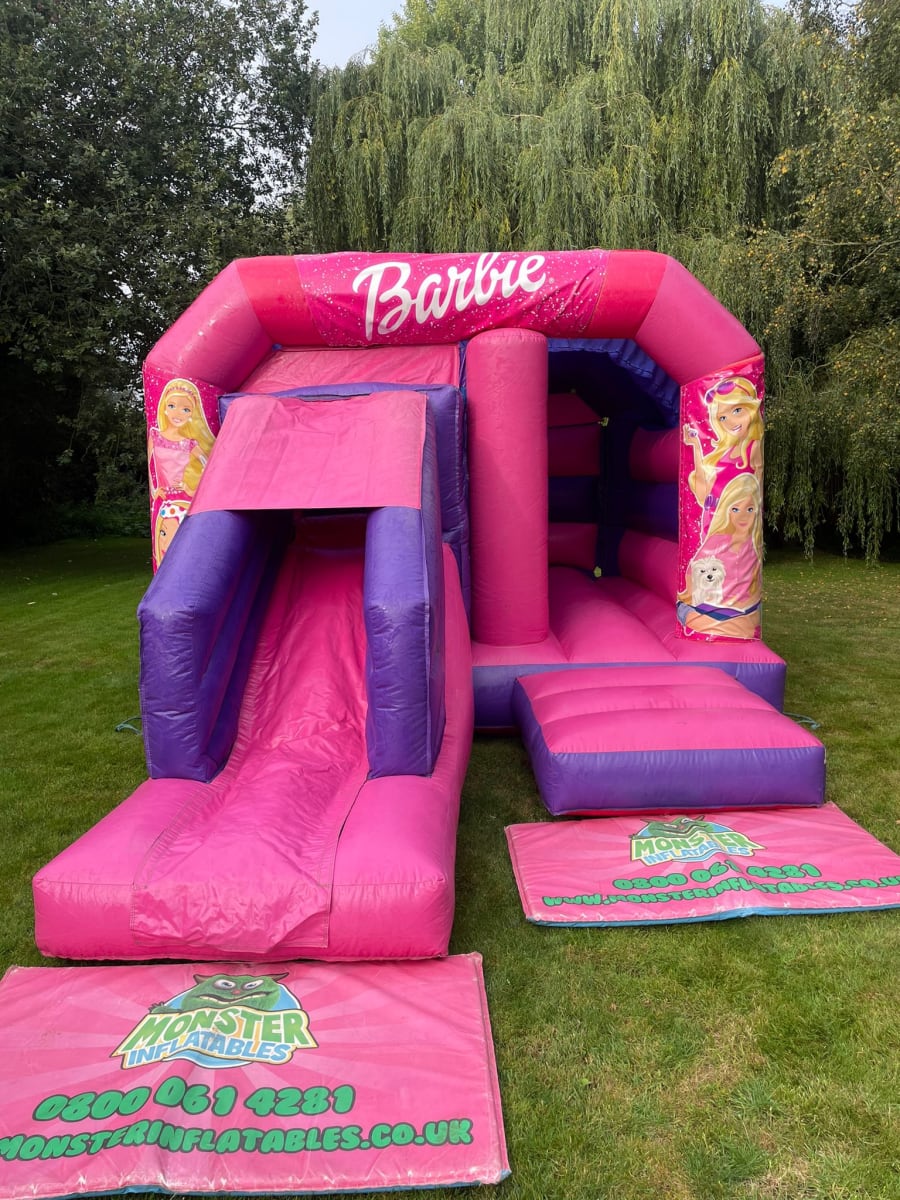 Front Slide Barbie Bouncy Castle Hire in Chelmsford, Witham, Brentwood, Braintree, Billericay and Maldon