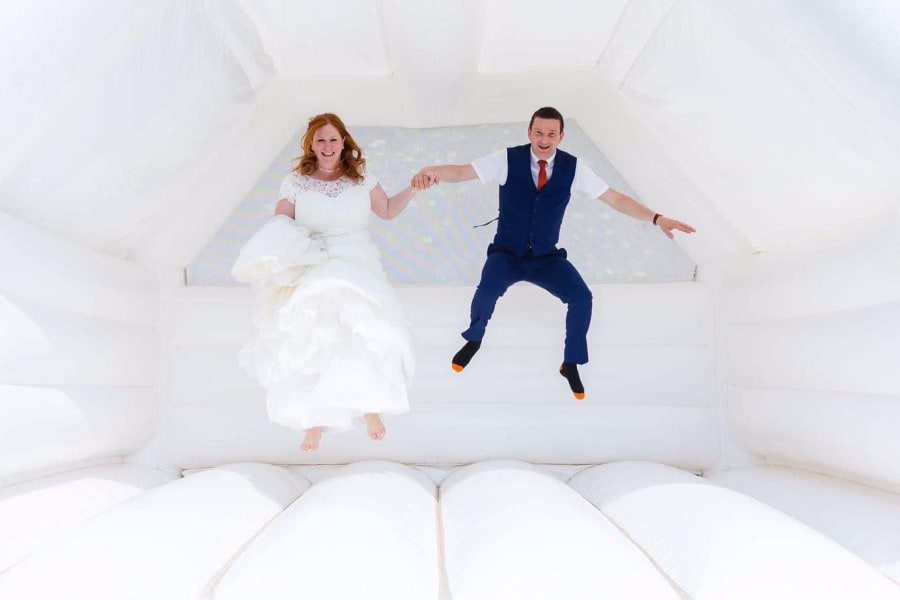 Hire a wedding bouncy castle in Essex and you are guaranteed some great photographs that will shine out from the standard poses you see so often. Bounce in your wedding dress and morning suit, jump in your evening outfits, or wave goodbye in style before you set off on your honeymoon. It’s a truly unusual way to remember the day.