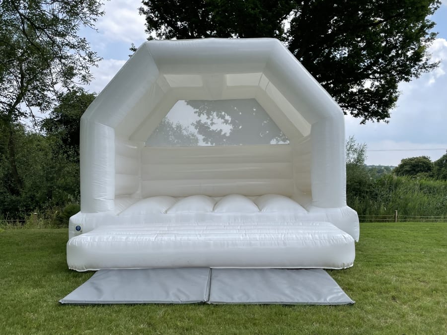 Jump for joy on your special day with this elegant white wedding bouncy castle. The happy couple have never looked happier!