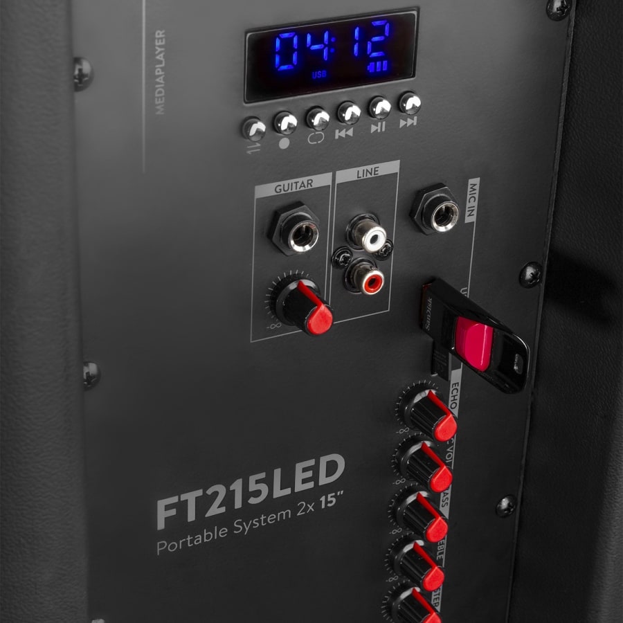 The portable party speaker for hire in Chelmsford, Brentwood, Witham, Braintree, Billericay and Maldon also comes with two wireless microphones, making it ideal as a PA system for a huge range of events, from line dancing to country shows, school sports days to wedding celebrations. It has a flexible choice of inputs, including aux for CD and mp3 players and guitar input for up and coming bands, plus bass and treble controls.