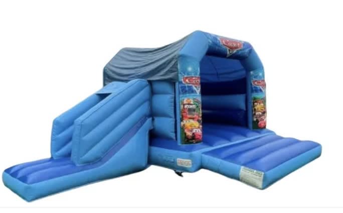 The race is on for fun with your favourite Cars characters on this all-action blue bounce and slide castle