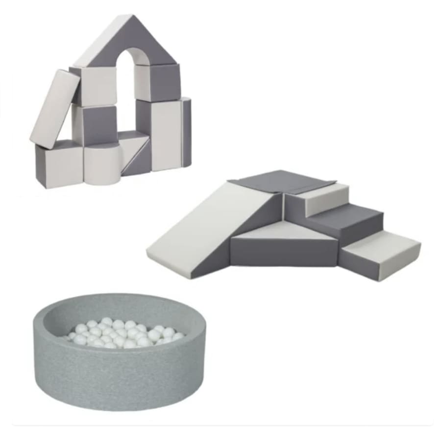 The wedding soft play set for hire in Chelmsford, Brentwood, Witham, Braintree, Billericay and Maldon is like a pop-up creche and comes with a full set of shapes that let their imaginations run wild. You also get a grey mini ball pool with wedding white balls and you can set it up almost anywhere with 24 interlocking playmats that can be built to fit any shape.