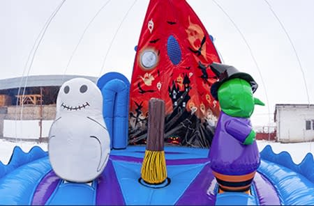 …and things that go bump in the night! They’re all here in this incredible Halloween party dome – the perfect centrepiece for a wicked night of freaky fun. Step inside the clear plastic inflatable dome at your peril, because lying in wait is a spooky ghost and an evil old hag of a witch with her flying broomstick standing by ready to fly. And it’s all backed by a spine-chilling scene of a haunted castle surrounded by bats and crows, spirits and spooks.