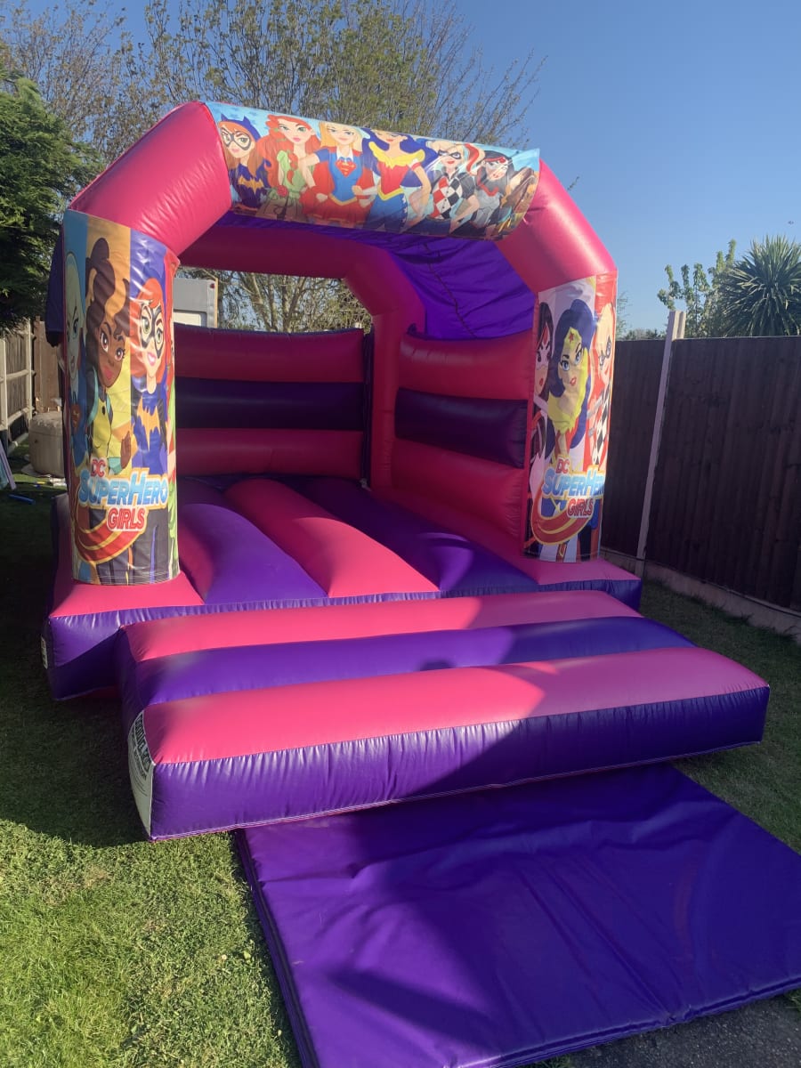 You’ll be your little girl’s hero when you book this colourful castle, packed with all her cartoon favourites. The whole gang are here, masked up and ready to fight crime, including Zatanna, Supergirl, Wonder Woman, Green Lantern, Bumblebee and Batgirl. They’re all around the entrance of this 12ft by 15ft castle to welcome the birthday girl and her guests.