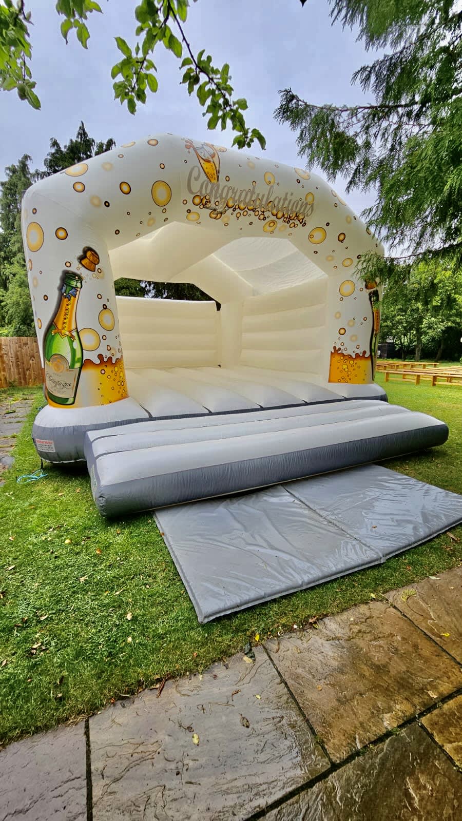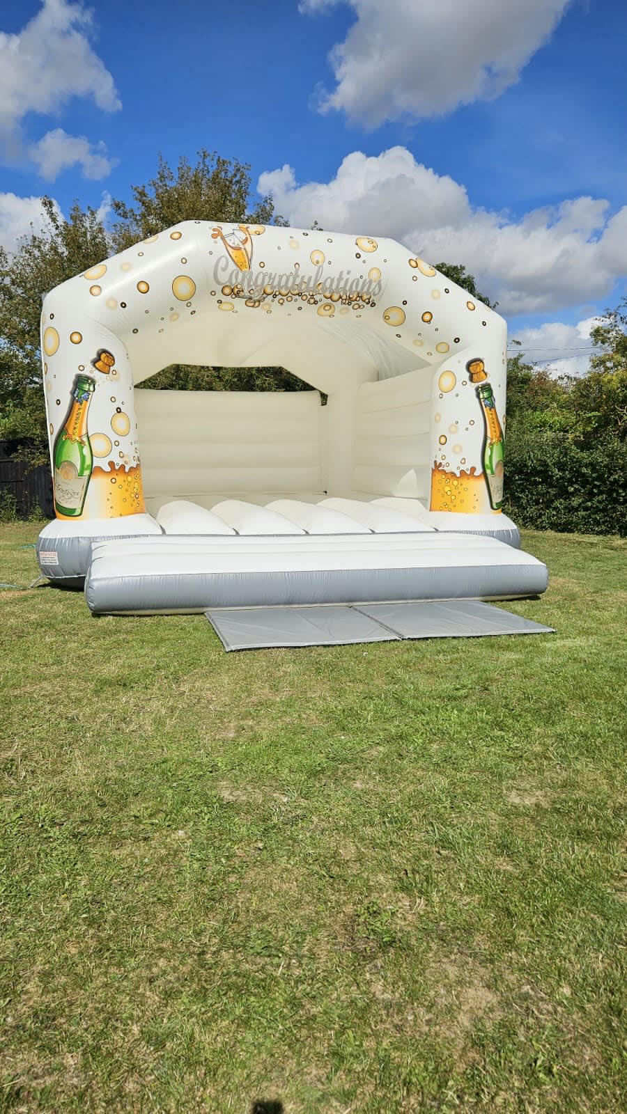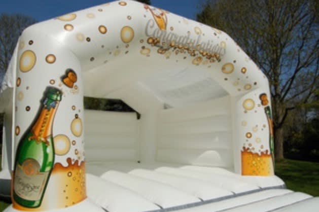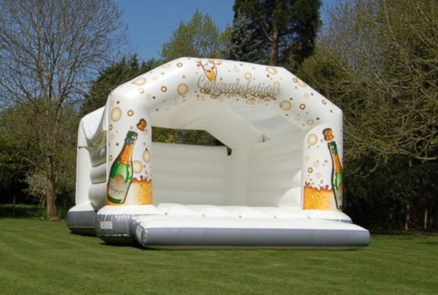Why wait for a wedding when this champagne celebration bouncy castle for hire in Chelmsford and across Essex is perfect for any event. Show your kids how proud you are of their exam or graduation success, celebrate that landmark birthday or anniversary with some brilliant bouncing fun, or get the whole team jumping for joy at that trophy win or championship victory.