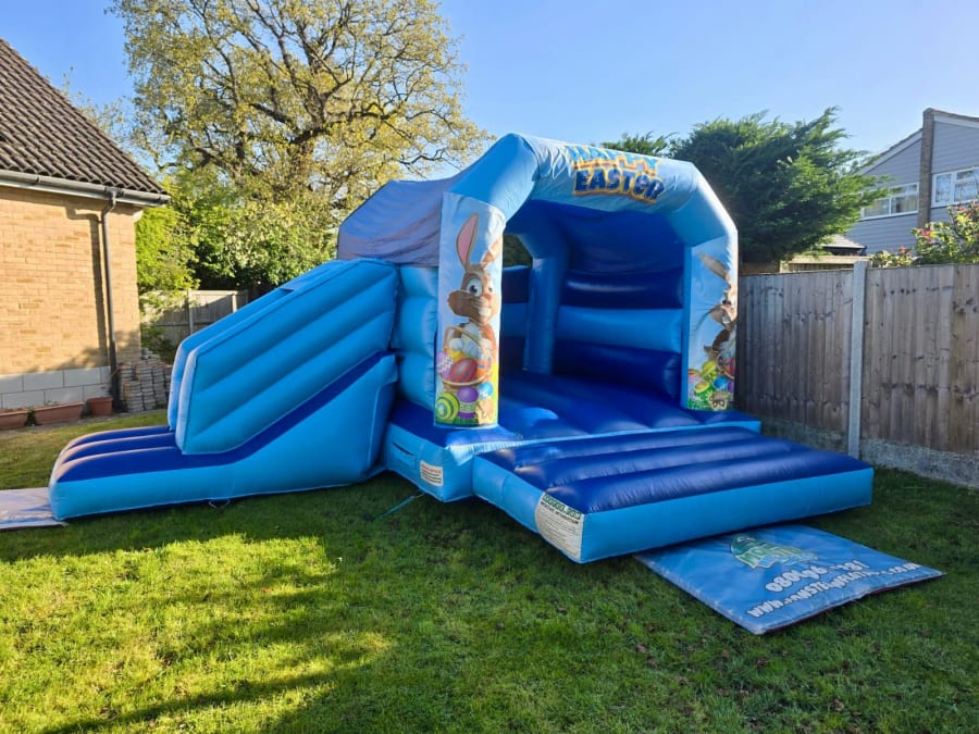 Side slide bouncy castles are perfect for little kids because the open front means they can see you are still there, and you can keep an eye on them too. They still get all the excitement of the slide on the side without feeling enclosed or cut off. And if Easter isn’t quite right, you can hire a side slide bouncy castle in more than fifty other themes, so whatever they’re into, we’ve got the perfect bouncy castle to match. Call now for more details.