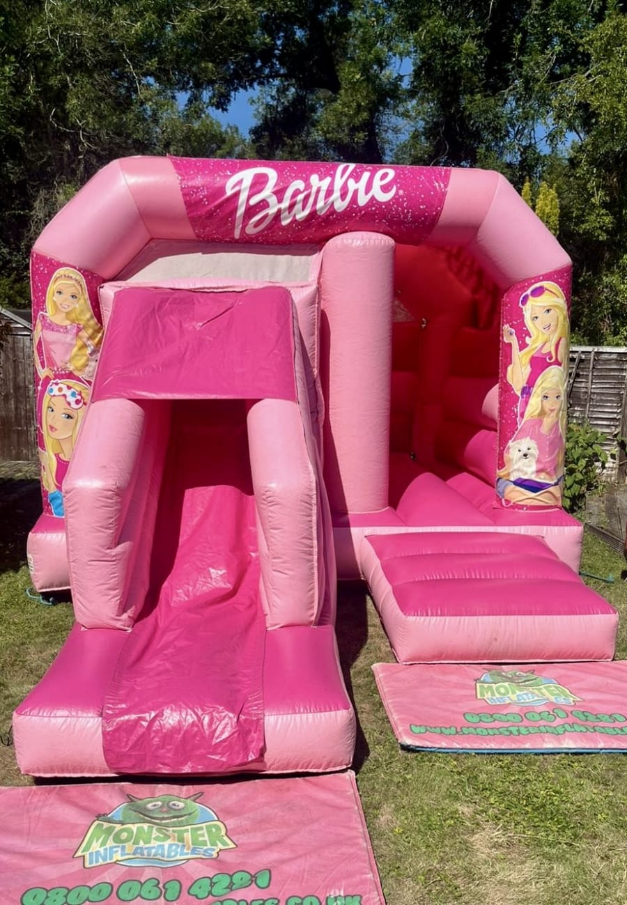 Front Slide Barbie Bouncy Castle Hire in Chelmsford, Witham, Brentwood, Braintree, Billericay and Maldon