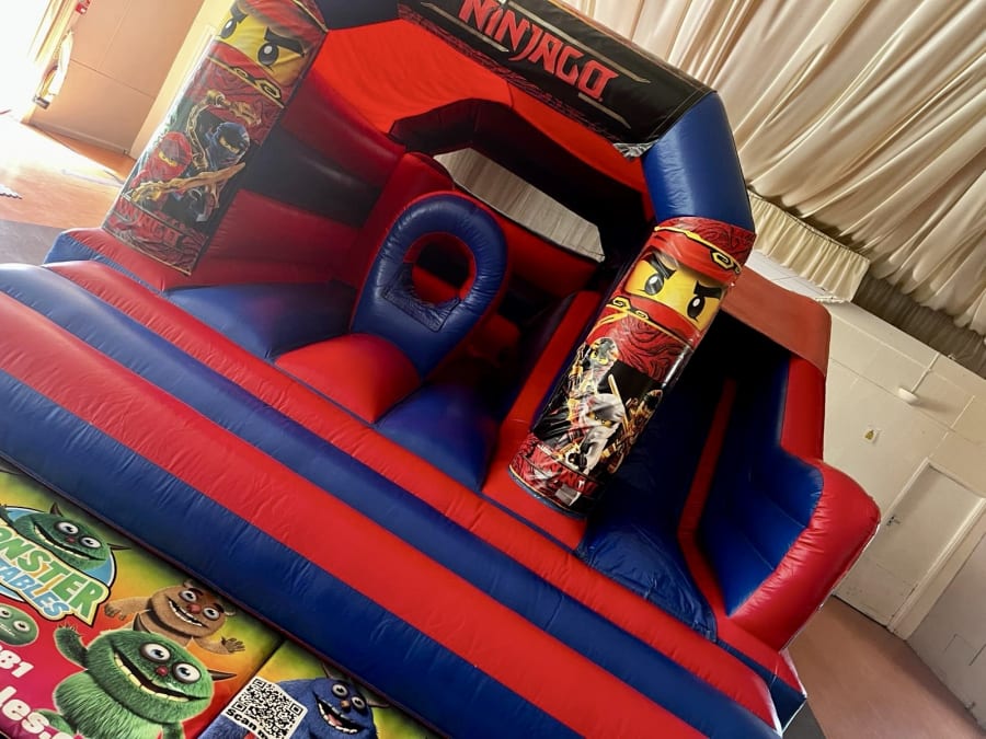 Front Slide Lego Ninjago Bouncy Castle Hire in Chelmsford, Witham, Brentwood, Braintree, Billericay and Maldon