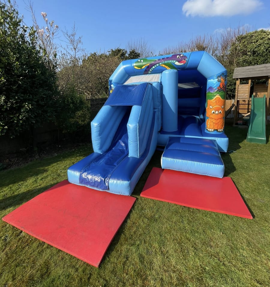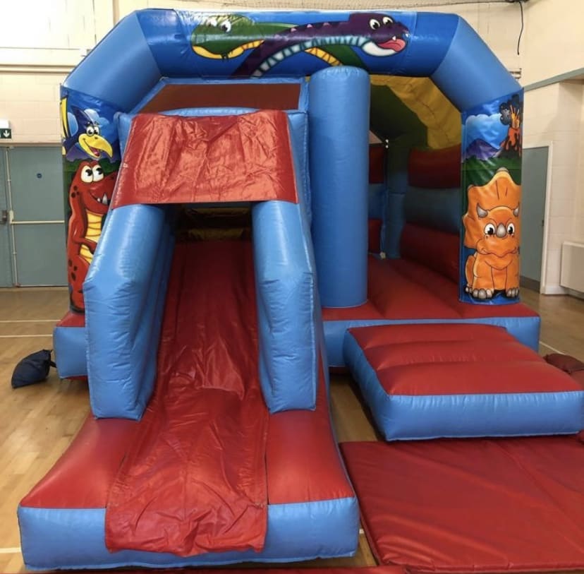 Monster Inflatables new Dinosaur themed bouncy castle with slide.