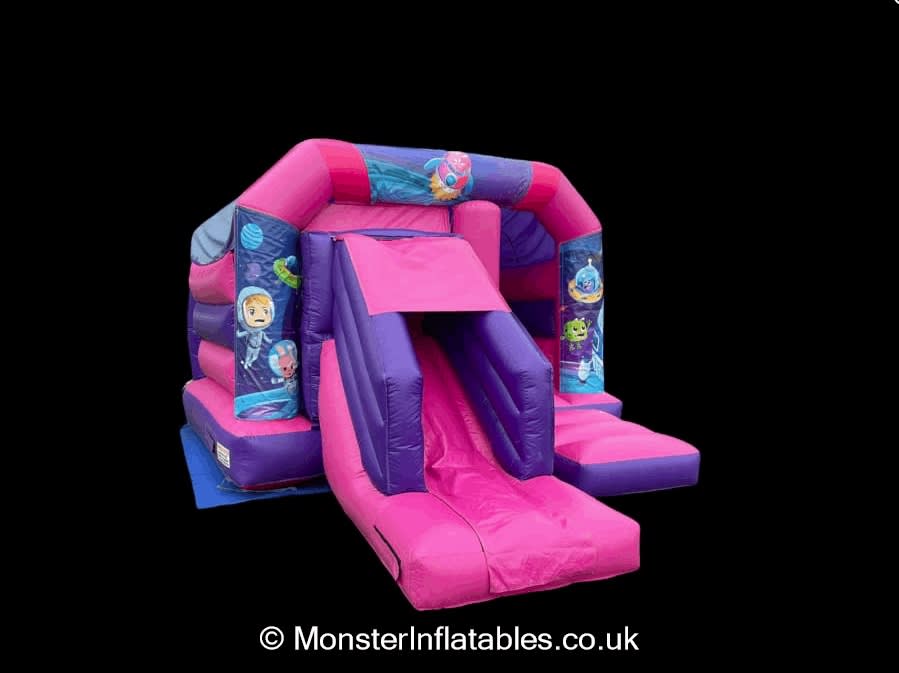 Ground control to major fun! Any party is sure to take off with this amazing pink space themed bounce and slide, ideal for budding astronauts!
