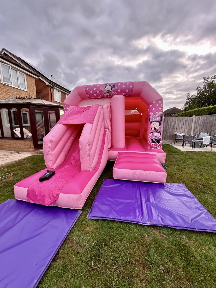 Join the cutest cartoon character of them all as Minnie Mouse joins the party on this pretty bounce and slide