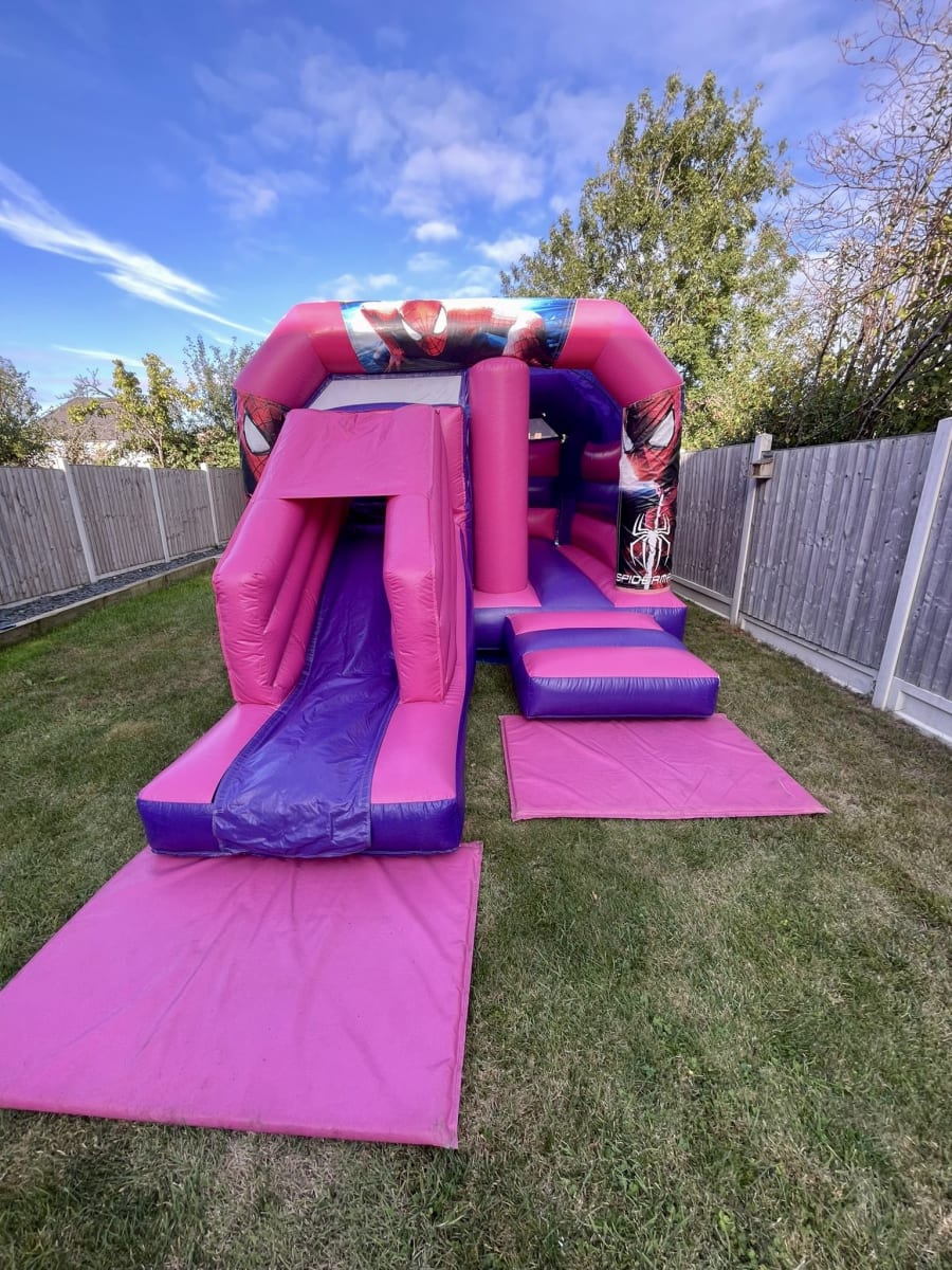 You can turn Spider-man into slider-man with this front slide castle, with a huge bouncing bed and a built-in front slide that will bring their superhero adventures to life. It all comes on our two-tone pink and purple base and can be used indoors or out wherever you have the space. With a low height of just 9ft 6ins, it will work in most hired halls and community centres as well as school halls and gyms.