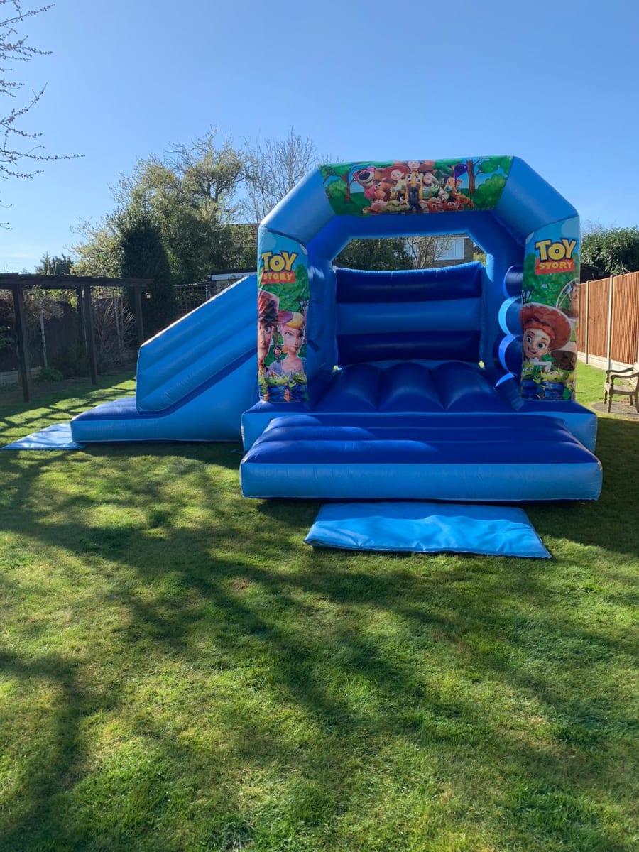 You can book your blue side slide Toy Story bouncy castle hire right now by clicking below, with nothing to pay up front and no charge if your plans change.Why not add a Toy Story helium balloon while you're booking.