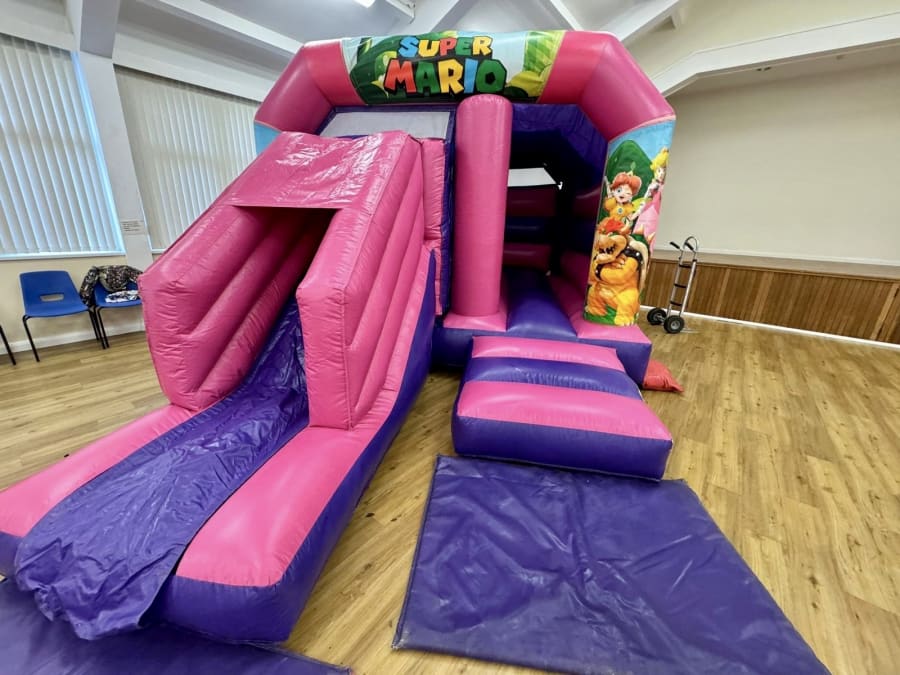 Mario is more than just a game character – he’s an international mega-star, with everything from films to theme parks, based on over 250 different games featuring the famous Italian plumber. He was right there at the start, and now he can be right there at your birthday party, delighting a whole new generation of gamers with this pink front slide Super Mario bouncy castle for hire in Chelmsford, Brentwood, Witham, Braintree, Billericay and Maldon.