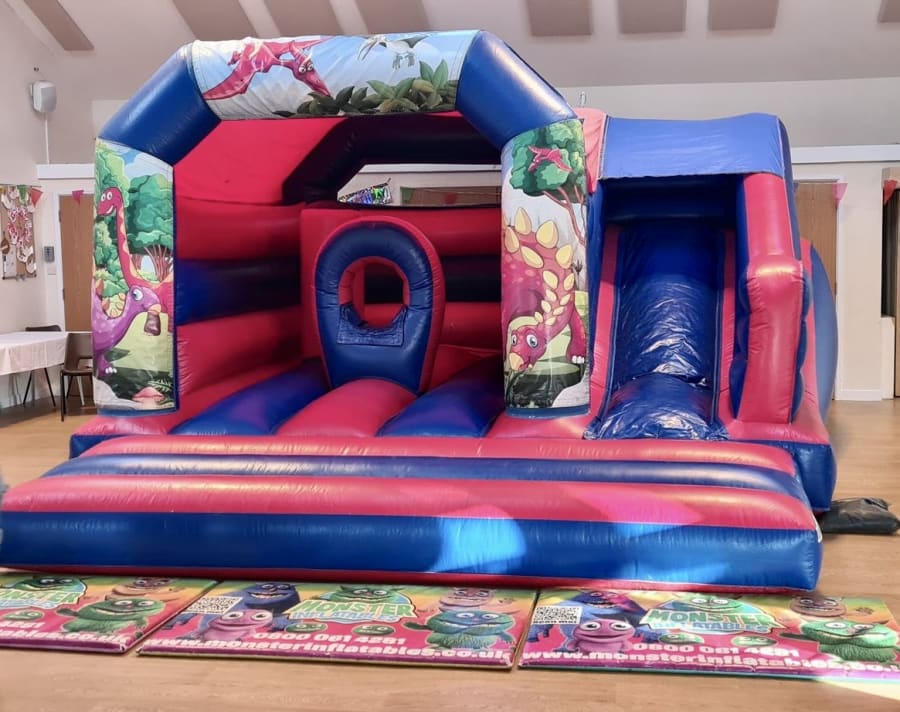 Just like the dinosaurs themselves, our dinosaur bouncy castles keep evolving to get better and better, to give your kids more and more fun. This latest version has more to do than ever before, from the huge step at the front that extends the bouncing area, to the mini climbing wall at the back to push them to new heights. We’ve also added new inflatable shapes to explore inside and an amazing slide on the side. Put it all together and it makes the basic bouncy castle seem positively pre-historic by comparison.
