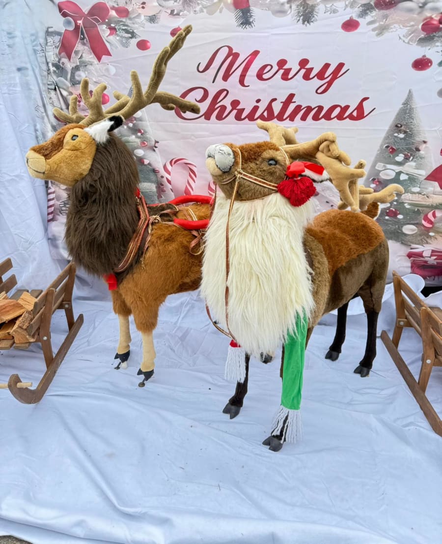 These life-like reindeer are decorative props designed to enhance your Christmas setups. They work beautifully as standalone decorations, part of a larger scene, or alongside other festive props. Their detailed design makes them ideal photo opportunity props, adding extra charm and festive spirit to your event.