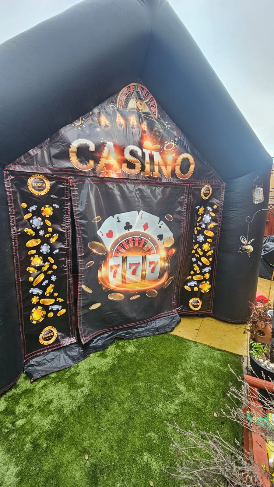 This pop-up casino for hire in Chelmsford, Witham, Maldon, Brentwood, Braintree and Billericay is dressed to impress with black and gold graphics across the entrance, setting the scene for a night of high-stakes action inside. You can even add to the authenticity by hiring a retro games machine or add a disco speaker and lights set to build the atmosphere. Talk to our team about creating your personal casino package.