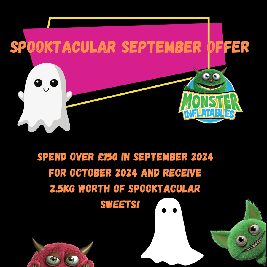 Spend over £150 in September 2024 for hires in October 2024 and receive a 2.5kg bucket of mixed sweet treats. This offer is perfect for those spookey halloween parties.