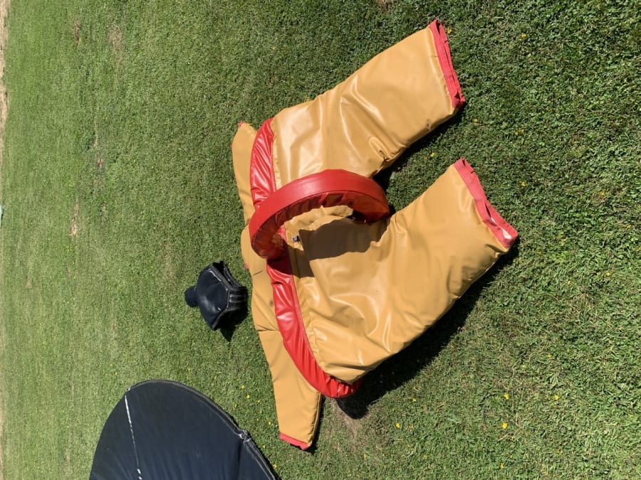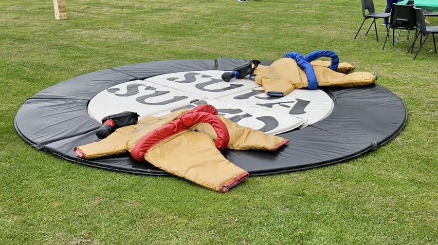Each set of adult sumo suits for hire in Essex comes complete with two full sized body suits and two head protectors in the style of sumo wrestler hair. Plus, you also get a padded wrestling ring mat to make your landing even softer. To make sure everyone can join in, we also offer teenage sumo suit hire and kids’ sumo suit hire, providing scaled down versions of the scaled up bodies.