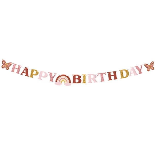 Transform any birthday celebration into a trendy, bohemian paradise with our 3m Boho Birthday Maverick Paper Banner. Perfect for those who love muted shades, rainbows, and butterflies, this banner adds a touch of elegance and whimsy to your party decor. Whether you're planning a birthday bash for a child or an adult, this versatile banner fits seamlessly into any alternative party theme.