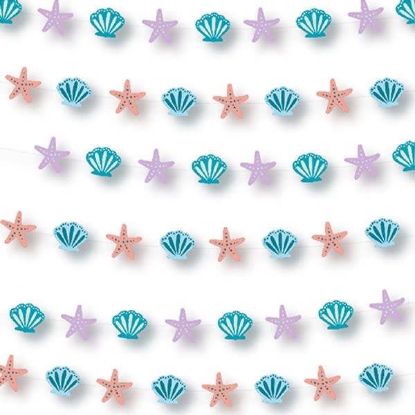 Vibrant Oceanic Theme: The Mermaid Tales String Paper Decorations feature a delightful assortment of shells, stars, and sea motifs, capturing the essence of a mesmerising underwater world.
