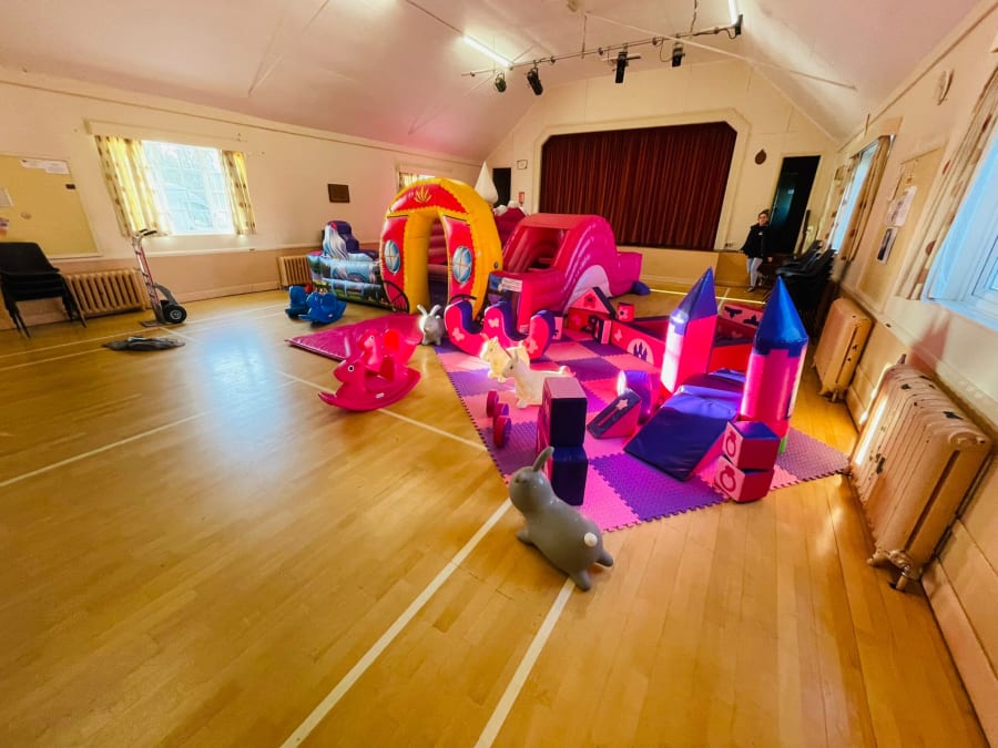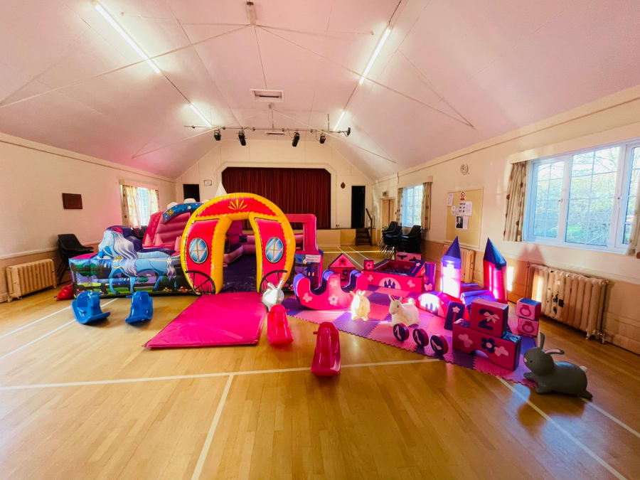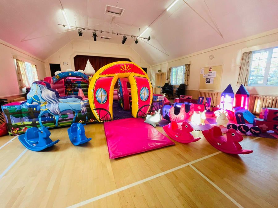 You can set up your princess party mega package anywhere you like, indoors or out, and it works particularly well in hired halls and community centres. You can even split it between the two, with the princess play park outside and the soft play and ride ons indoors. The interlocking play mats allow you to create your play place in whatever shape you want to fit your room.